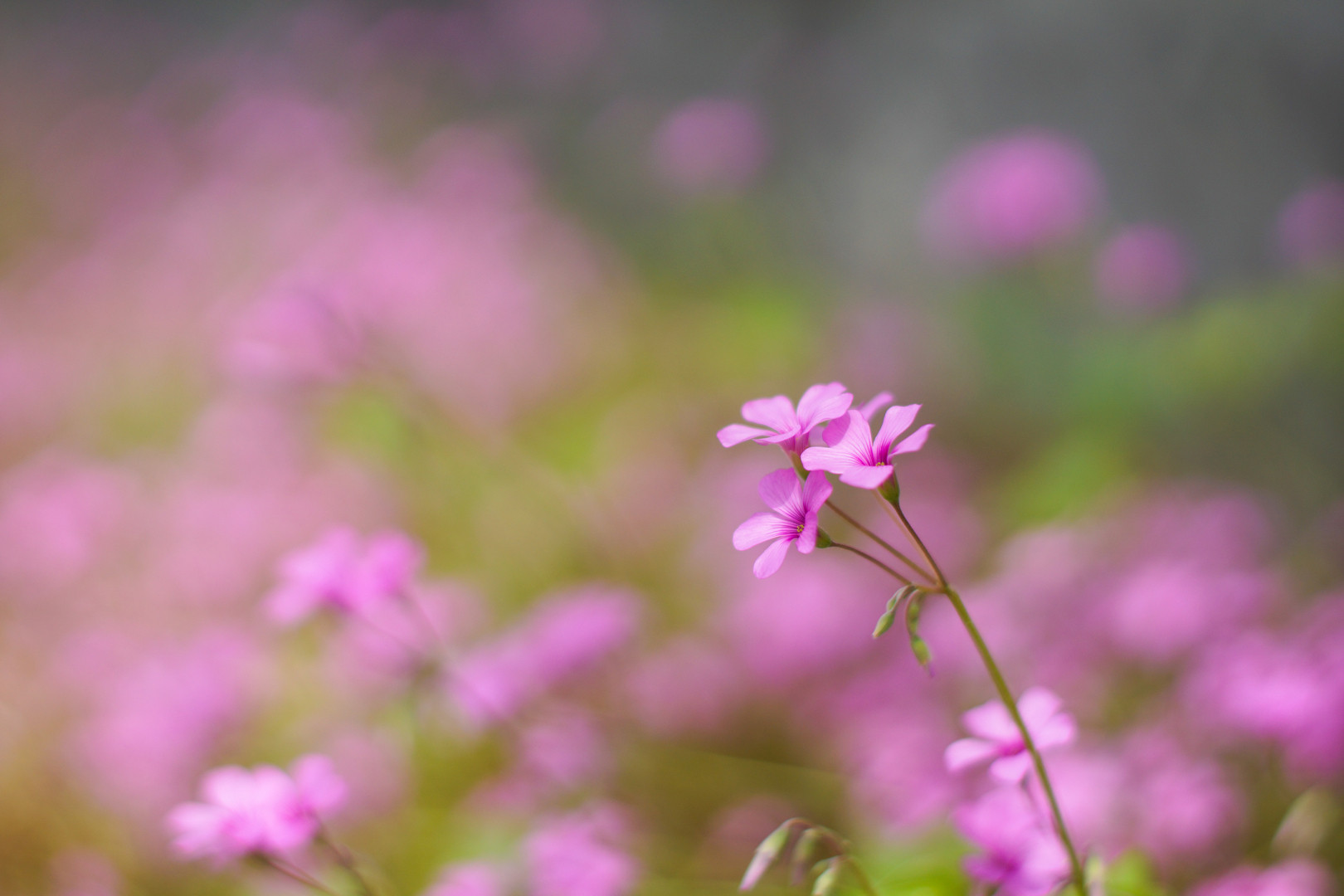 梅雨明けの強い日差しの中、ピンクの小さい花が優しく話しかけてくれてます。