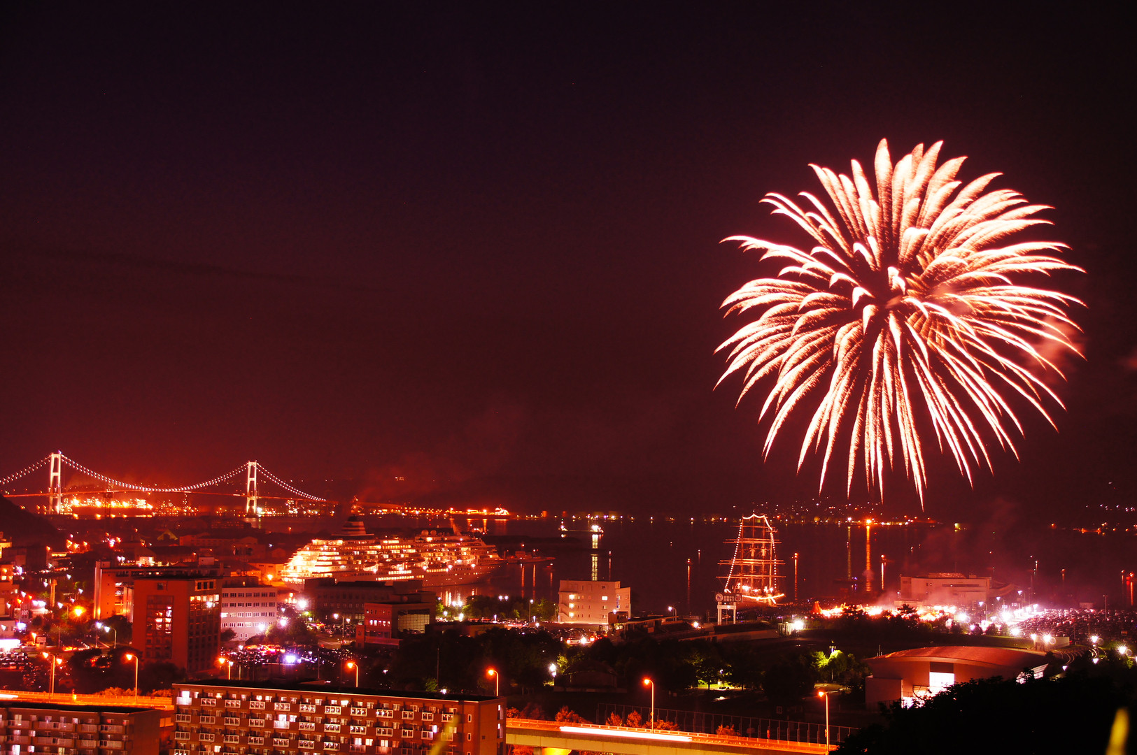 北海道室蘭市は、今日から港まつり。豪華客船の飛鳥Ⅱや帆船の海王丸が入港してにぎやかな花火大会になりました。