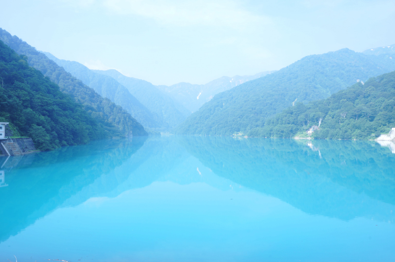 白山国立公園内の白水湖です。温泉成分が含まれている為、エメラルドグリーンに見えます。