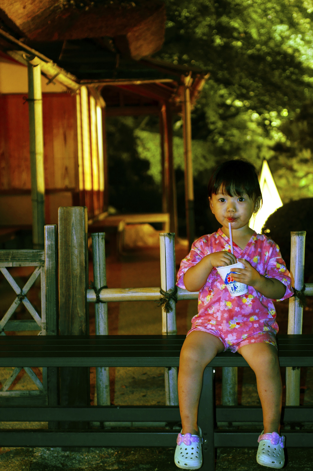 暑かったです~孫も汗びっしょりでかき氷をおいしそうに食べていました。休憩所の古い日本家屋が孫のじんべいにぴったりだったのでその二つを主役にしました。 とにかくじっとしてくれないので何枚撮ってもブレブレ。ISOを800にしたうえにフラッシュをたいてどうにか撮れました。