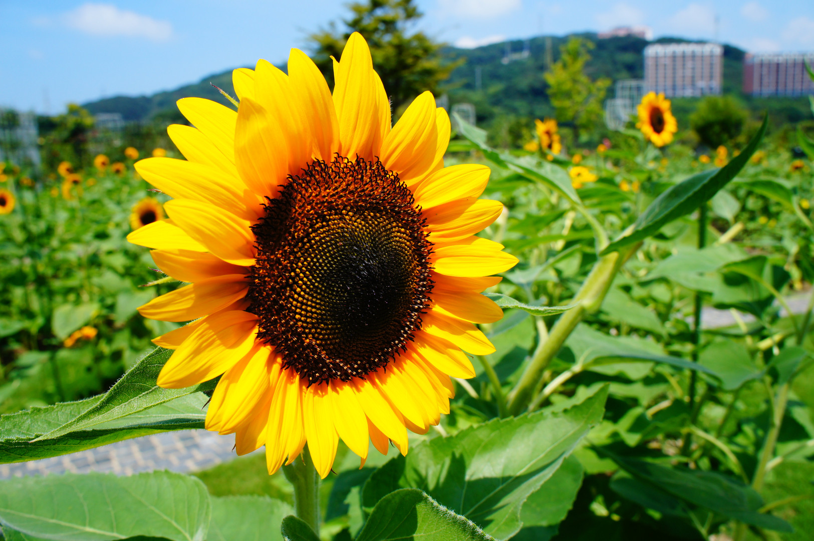 いつだったか、長崎のハウステンボスにて 撮影したものです。 ちょっと近すぎる気もしますが… 真夏に綺麗に力強く咲くひまわり。 いいなぁ^^