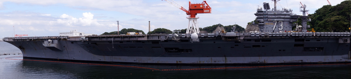横須賀基地に寄港していた、航空母艦 ジョージワシントン! それにしても長いぞ~~。 大きいぞ! 忘れていた機能、パノラマを使ってみました。