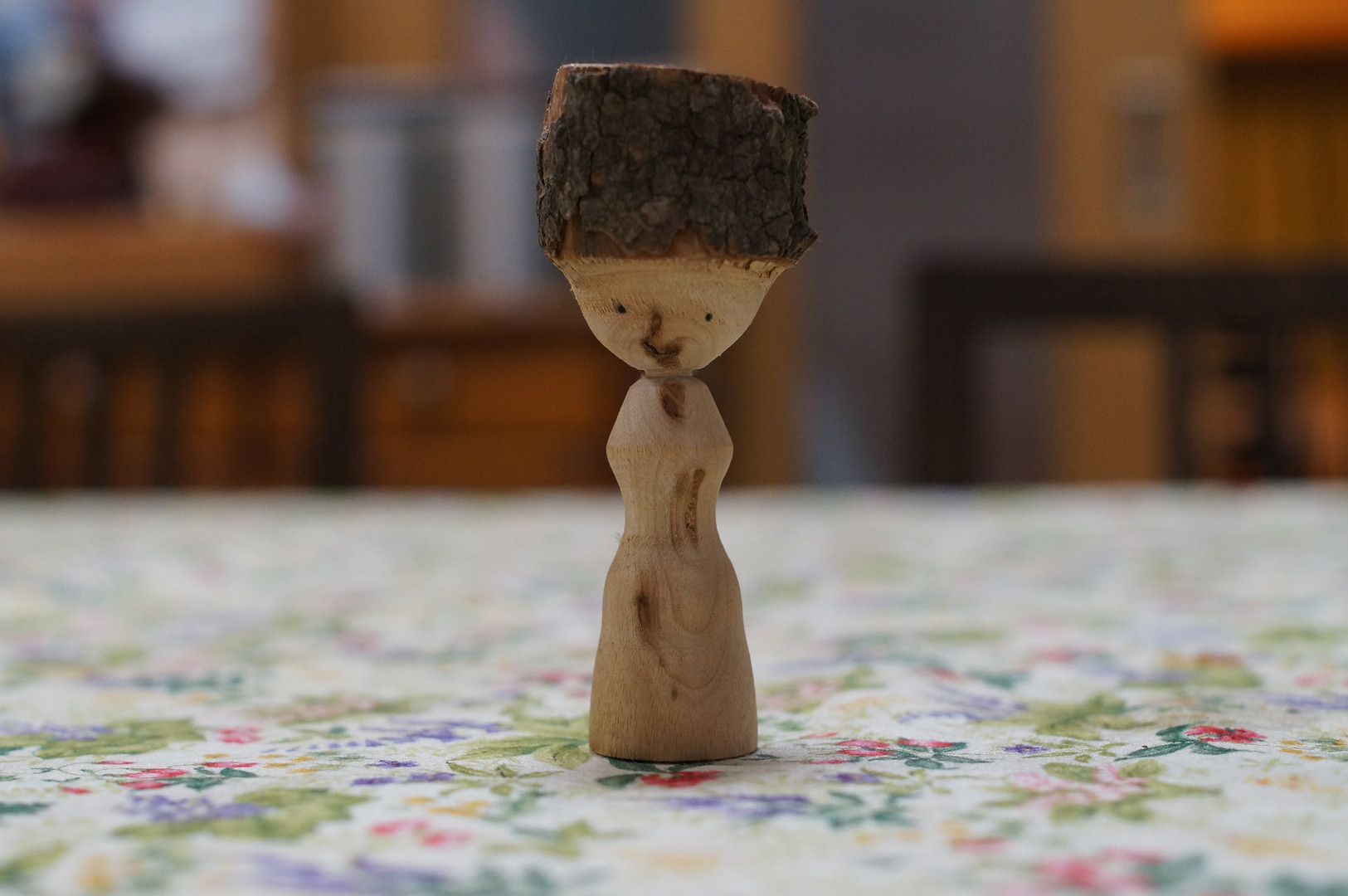 楠の枯れ枝を旋盤でけずっていたらたまたま生まれてきました。どこの星の男の子なんでしょう。