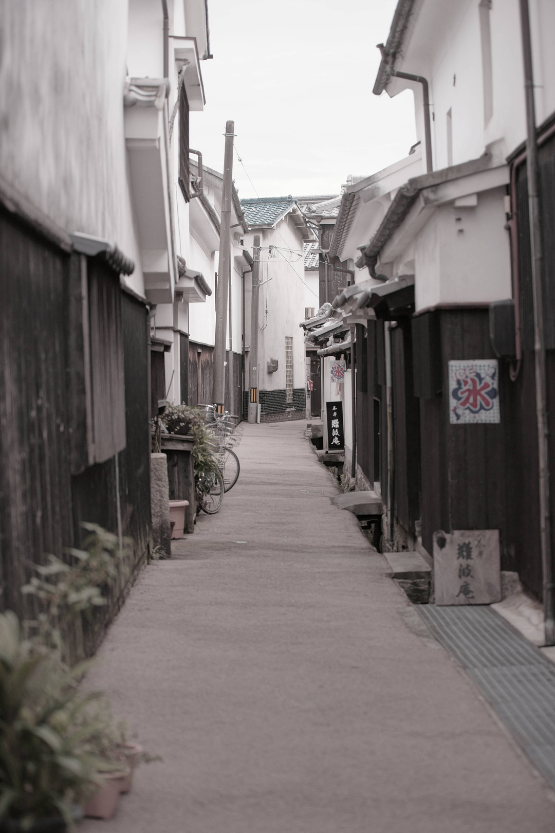 山口県柳井市の白壁の街並みです。 脇道に入るととてもノスタルジックな雰囲気です。