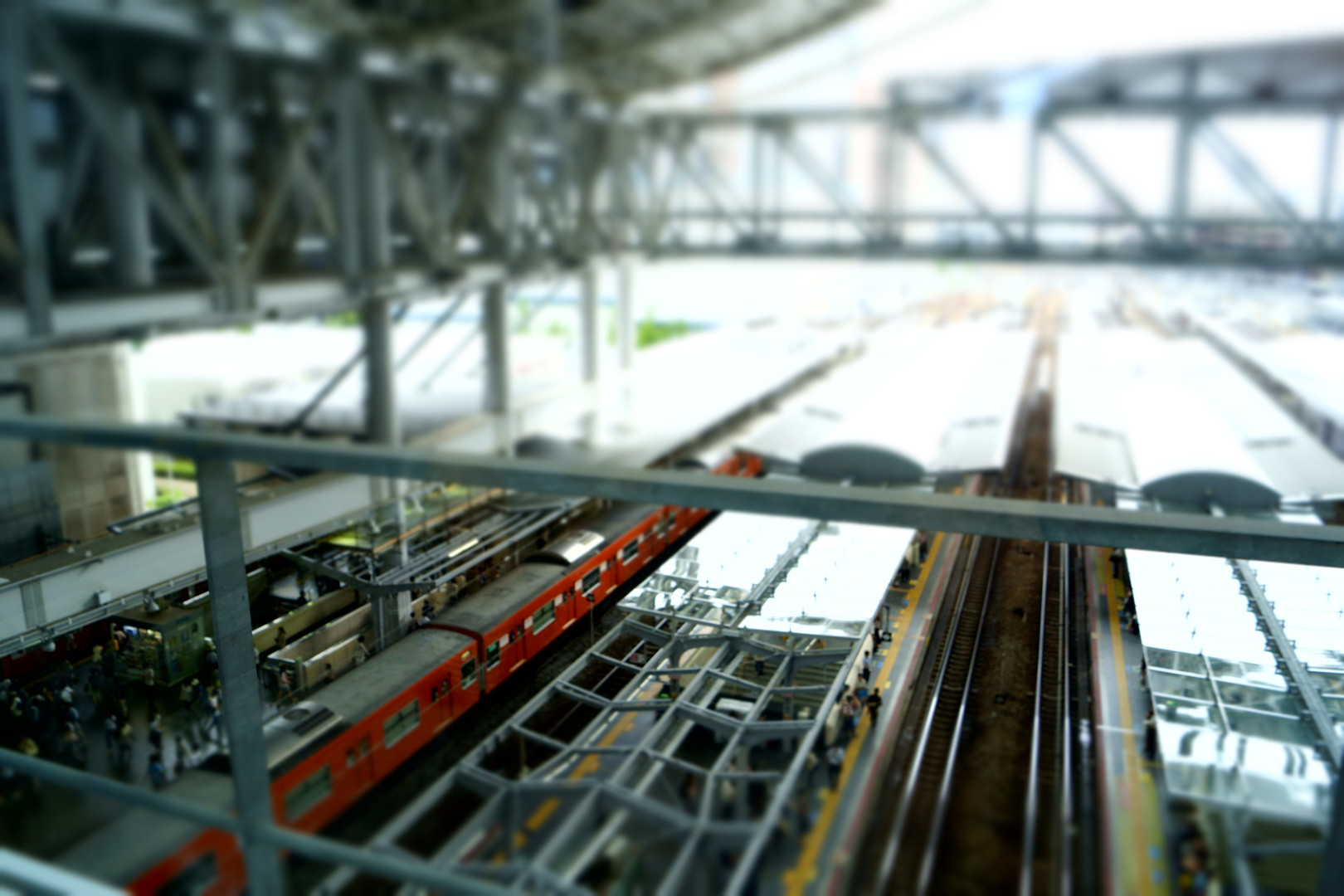 大阪駅の時空の広場からミニチュアモードでホームを撮影しました。 カメラにお任せで、シャッターを押すだけでこんあ写真が撮れるなんて、楽しくて仕方ありません。