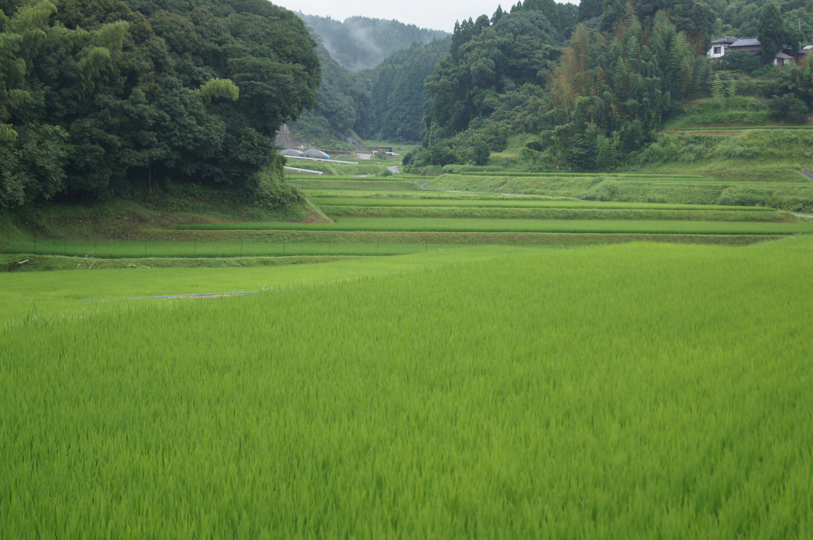 雨上がりの田んぼです。緑色がとても綺麗だったので、撮ってみました。