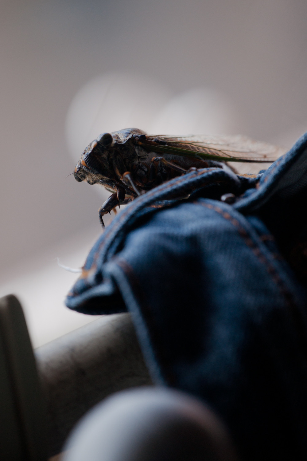 蝉が飛来してジーパンに。 折角なので記念撮影を。
