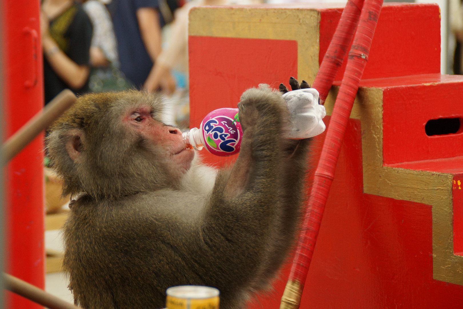 猿回しの休憩中にうまそうに飲んでたんで思わずシャッターをきりました。 この日はとても暑かったんで、お猿さんも炭酸飲料が飲みたかったんですなぁ~・・ ていうか、炭酸飲むだぁ~^o^;