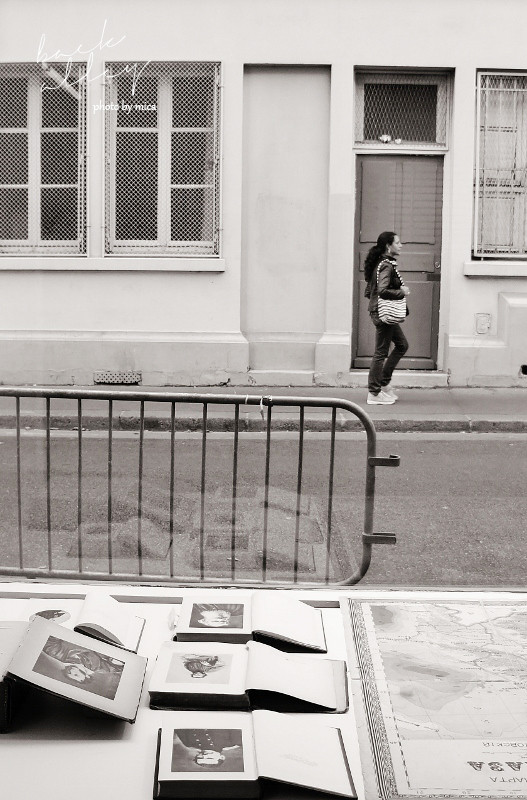 パリの表通りから 一歩中に入った 静かな裏通りの、小さなギャラリーの窓から 通りを行く人を眺めてみていた。