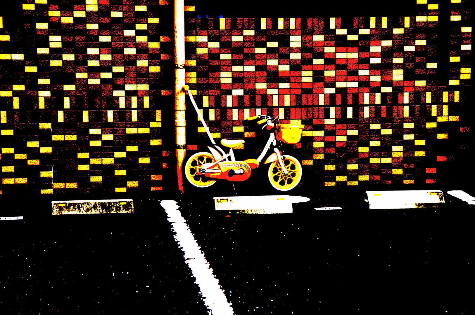 ポスタリゼーションエフェクトです。 直線が溢れている中、タイヤの丸い形が なんだか面白くて。