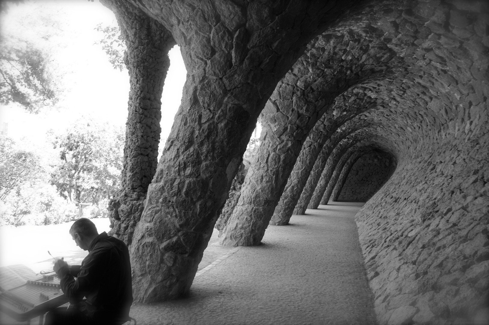グエル公園 石の回廊と音楽家。
