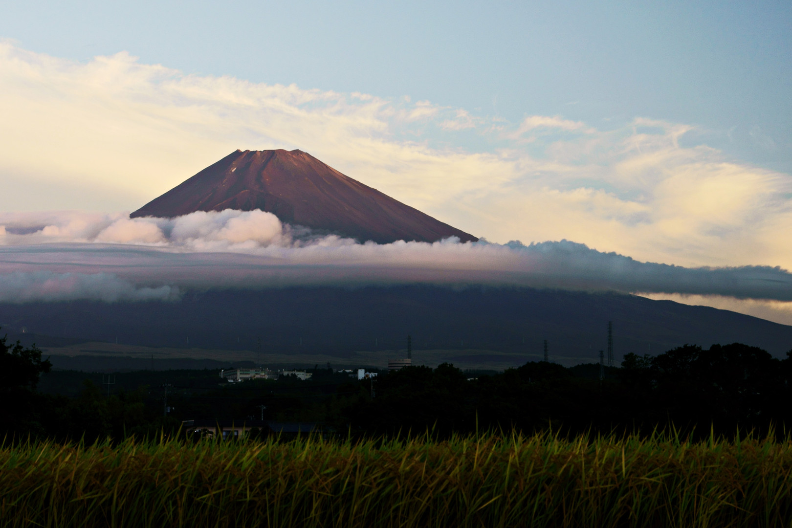 今朝の富士山を自宅近くから撮影しました。 このあたりは部分的に稲刈りは済んでいましたが、ここはまだみたいです。