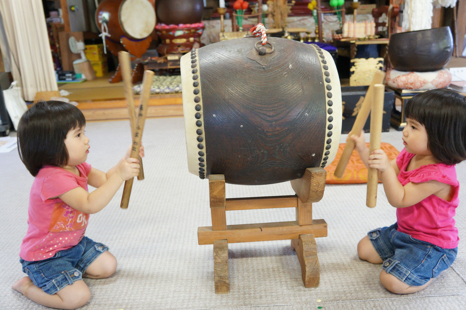 うちの子供たちは実家の本堂で使わなくなった太鼓で遊ぶのが大好きなんです(^_^;) なかなかリズム感もよくいい感じですo(^-^)o
