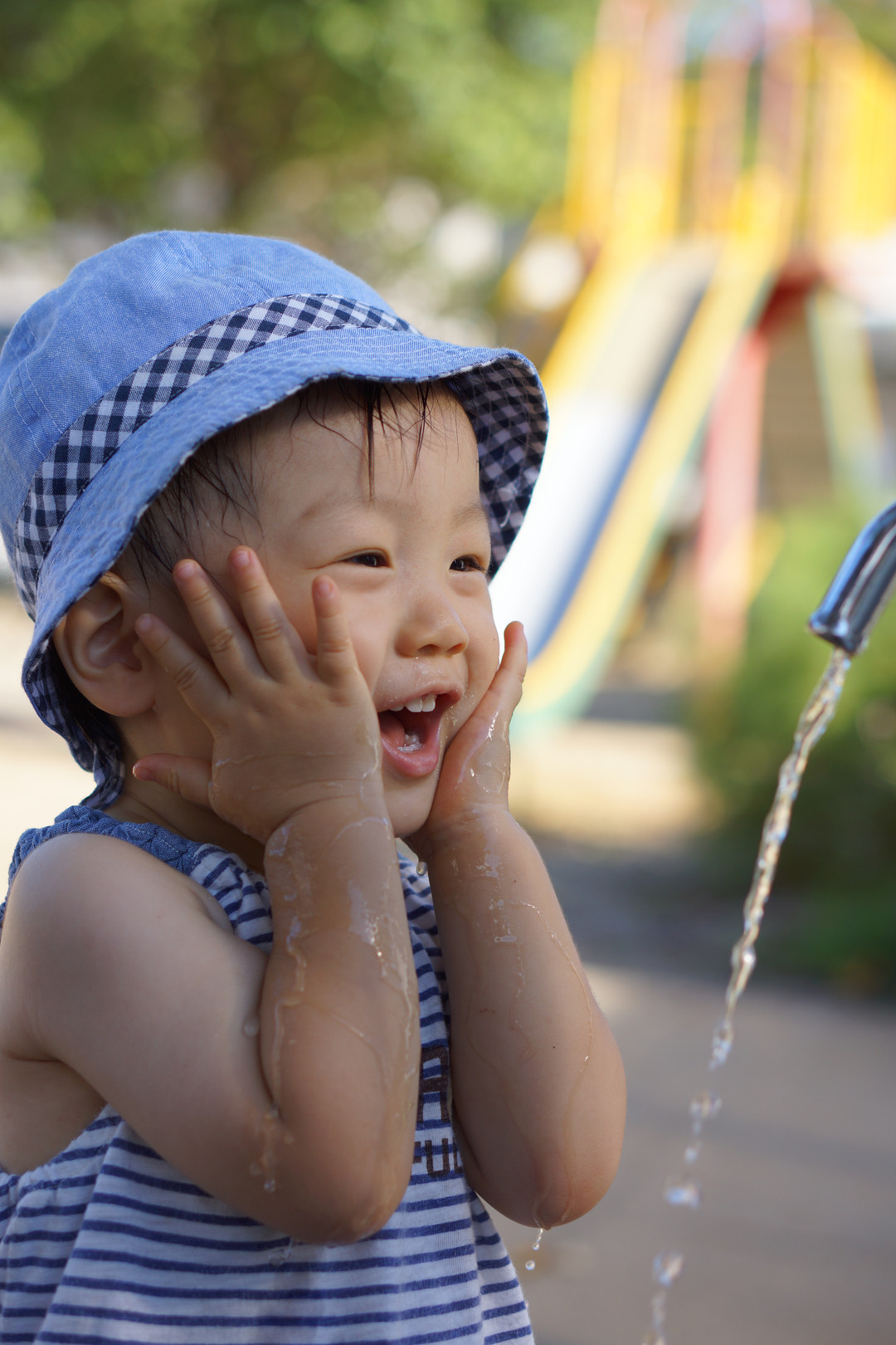 近所の公園で撮影しました。 最近、水で顔をパチャパチャするのがブームのようです。