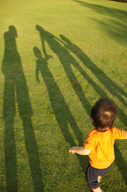 家族が4人になってから初めてのファミリーシャドー(*^_^*) 右から長女(6歳)、長男(1歳)、妻、私 2枚目「僕と影法師」 赤塚山公園主催「みんなの写真展」のポスターに採用されました(^O^)/