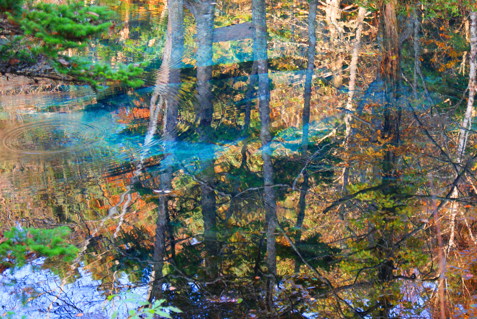 清里町の神の子池にて撮影。 針葉樹と広葉樹と池の色が混ざり、きれいでした。
