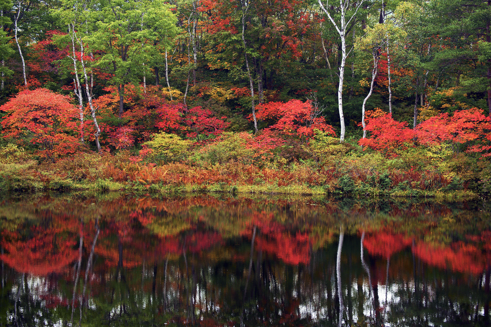 志賀高原 一沼の眺めです。 こちらも沢山のカメラマンが撮っておられました。