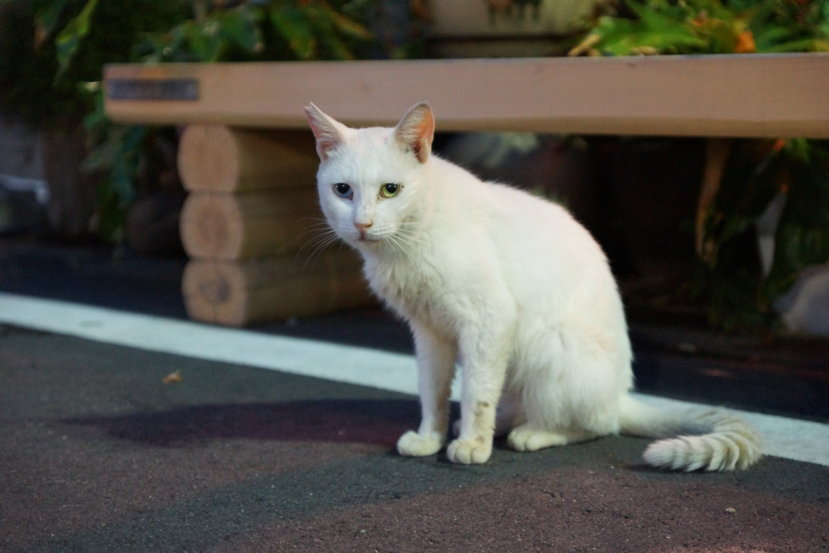 下田の港の近くに集まってきていた野良猫くんです。この他にもファミリーらしき猫がいっぱいいましたが、白いこの猫が水銀灯によく映えていました、