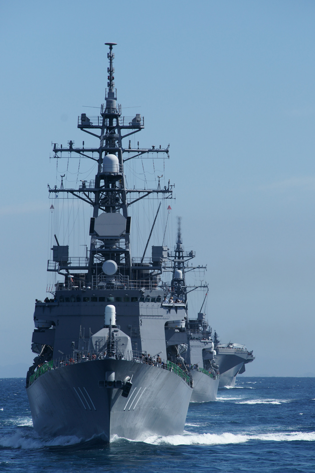 「おおなみ」「はるさめ」「いせ」の三隻を「たかなみ」から撮影しました。 この時、たかなみの前には「しらね」「はたかぜ」がいたので、ベストポジションは「はたかぜ」です。 とはいえ、へなちょこな割りにはいい写真を撮れました!