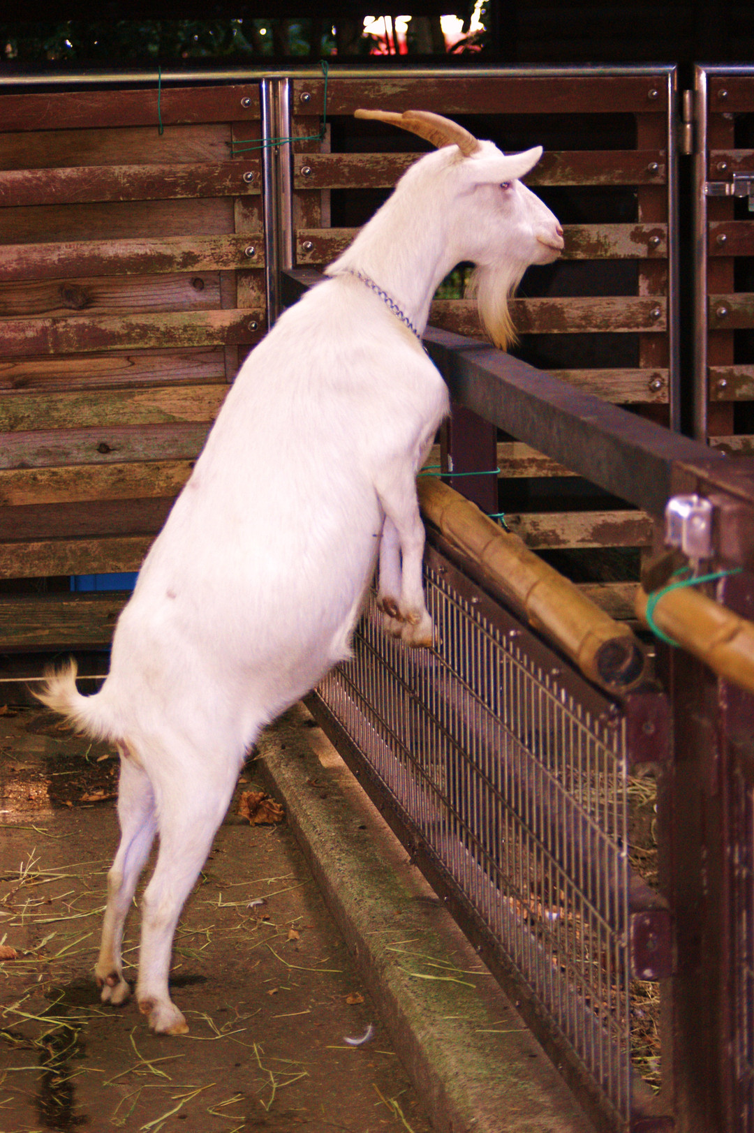 ヤギさんを見ていたら隣の羊の餌を覗き込んでいました。