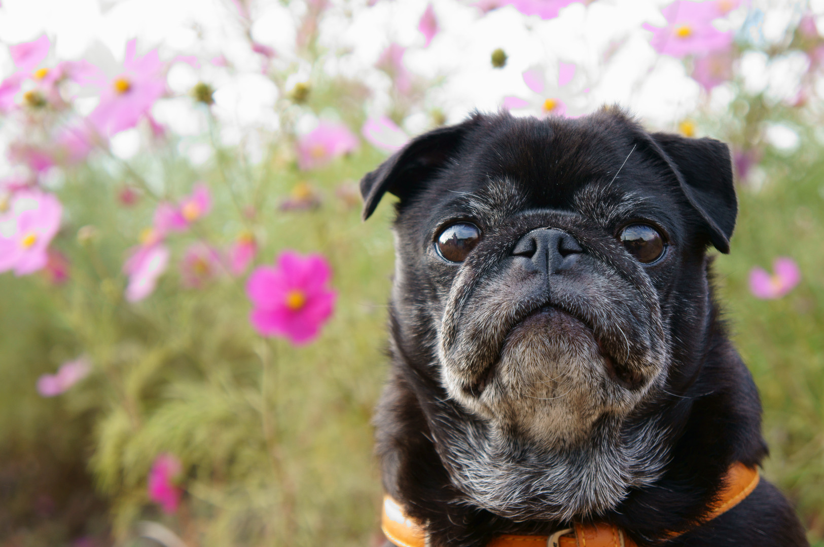 満開のコスモスの中、愛犬のこなつを撮ってみました。