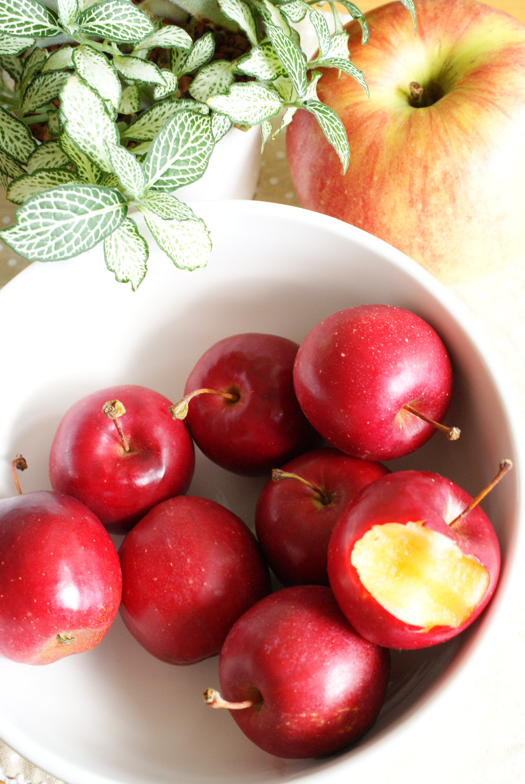 朝食のデザートに用意した林檎。 食べる前に写真をと思ったら、かじられちゃいました^^