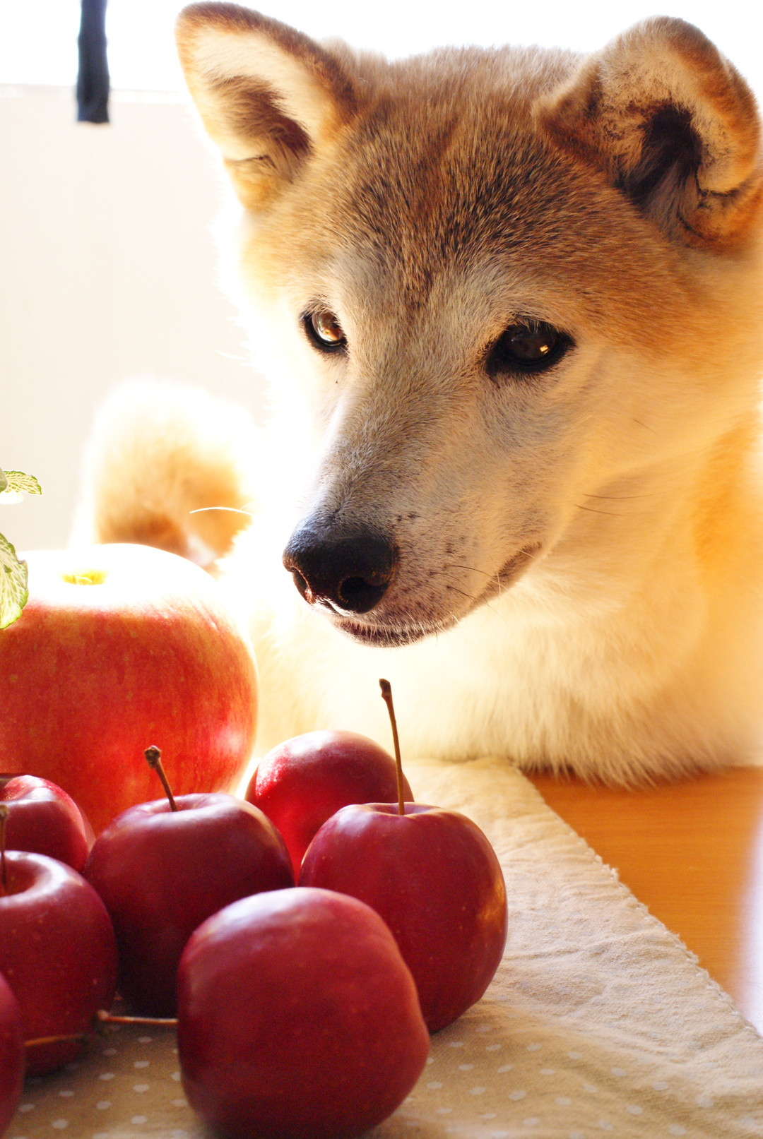 写真を撮っていると、やっぱり現れるココア。 こんなに小さな林檎を見るのは初めてです^^