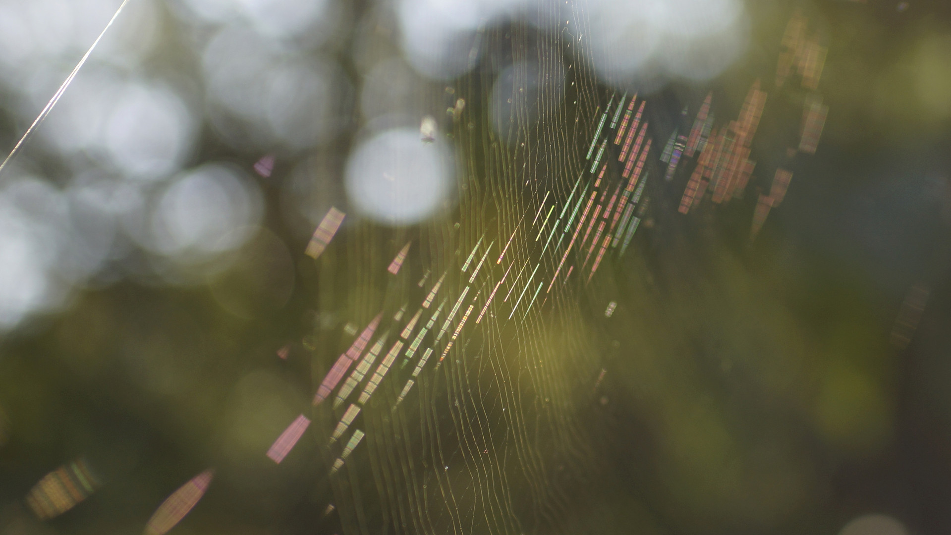 木漏れ日の中で輝いていたのは… クモの糸。 嫌われる事の多いクモだけど、その糸の織り成す反射光は 七色の虹に匹敵する。