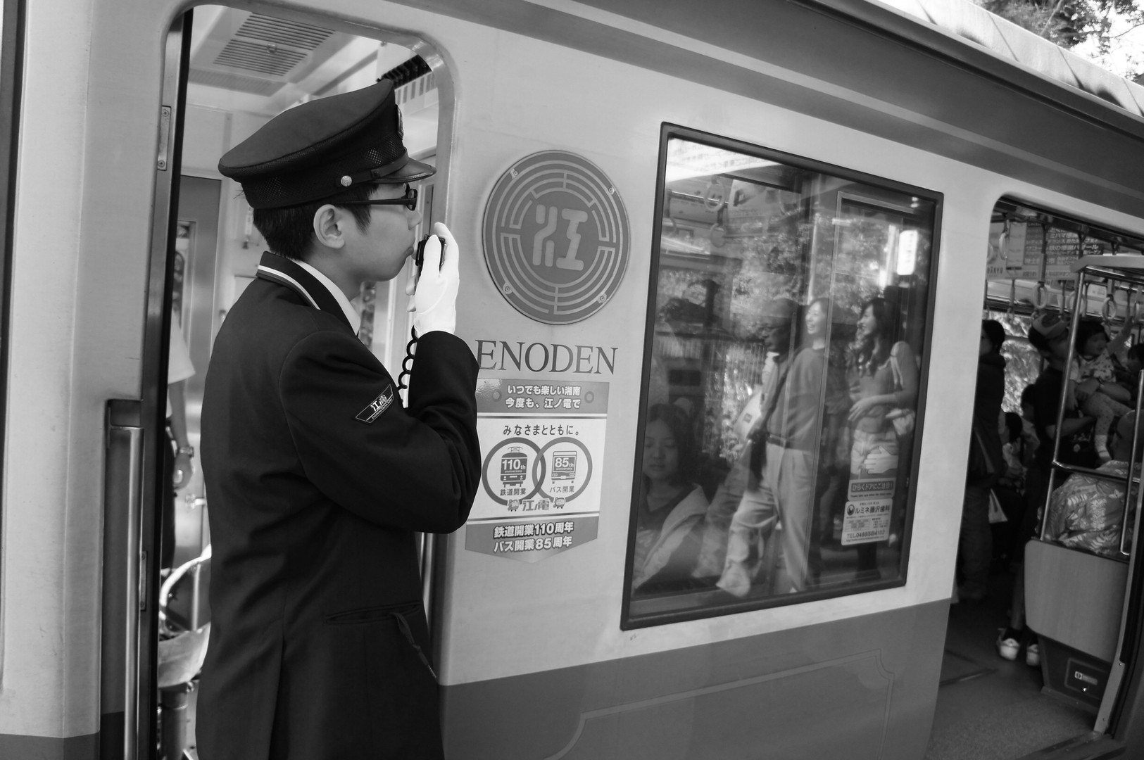 白黒にしてみました。 車掌さんって、やっぱりかっこいいですね!