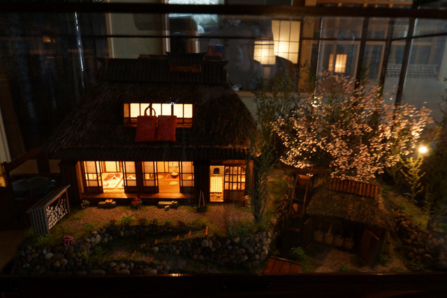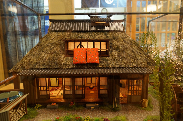 以前から気になっていた茅葺き屋根のミニチュア家屋を作られている方のお店を訪問。 様々な大きさの再現家屋が置いてあり、その殆どに電飾や水車の回転ギミックが仕込まれています。気になるお値段は一眼のレンズの世界とほぼ同じで、そこそこの低予算で買えるものからツァイスの全域F2.8ズームレンズに匹敵するものまであります。