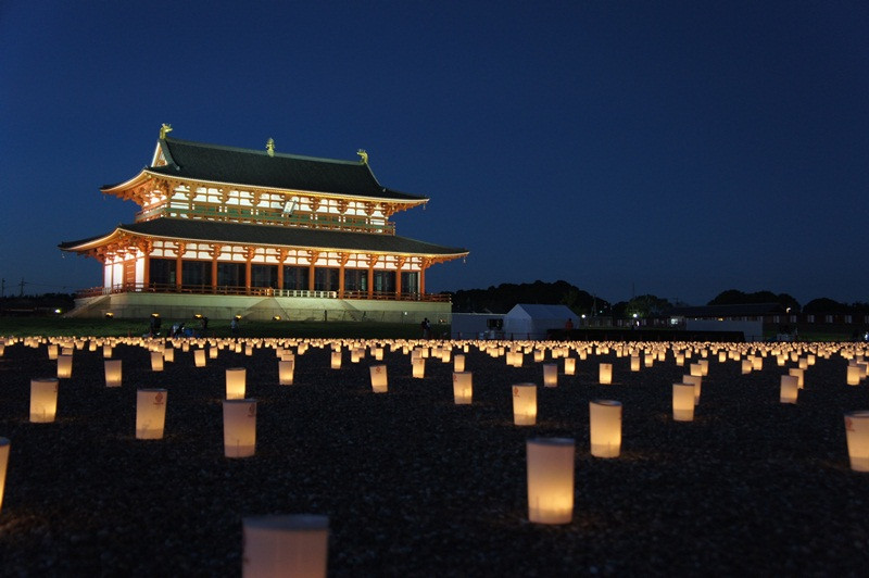 2012.08.27。平城京天平祭にて。大極殿前では燈花会の光が幻想的な景色を見せていました。