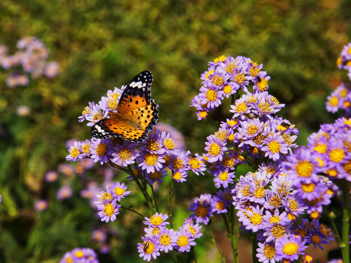 シオンの紫色をツマグロヒョウモンが引き立てています。
