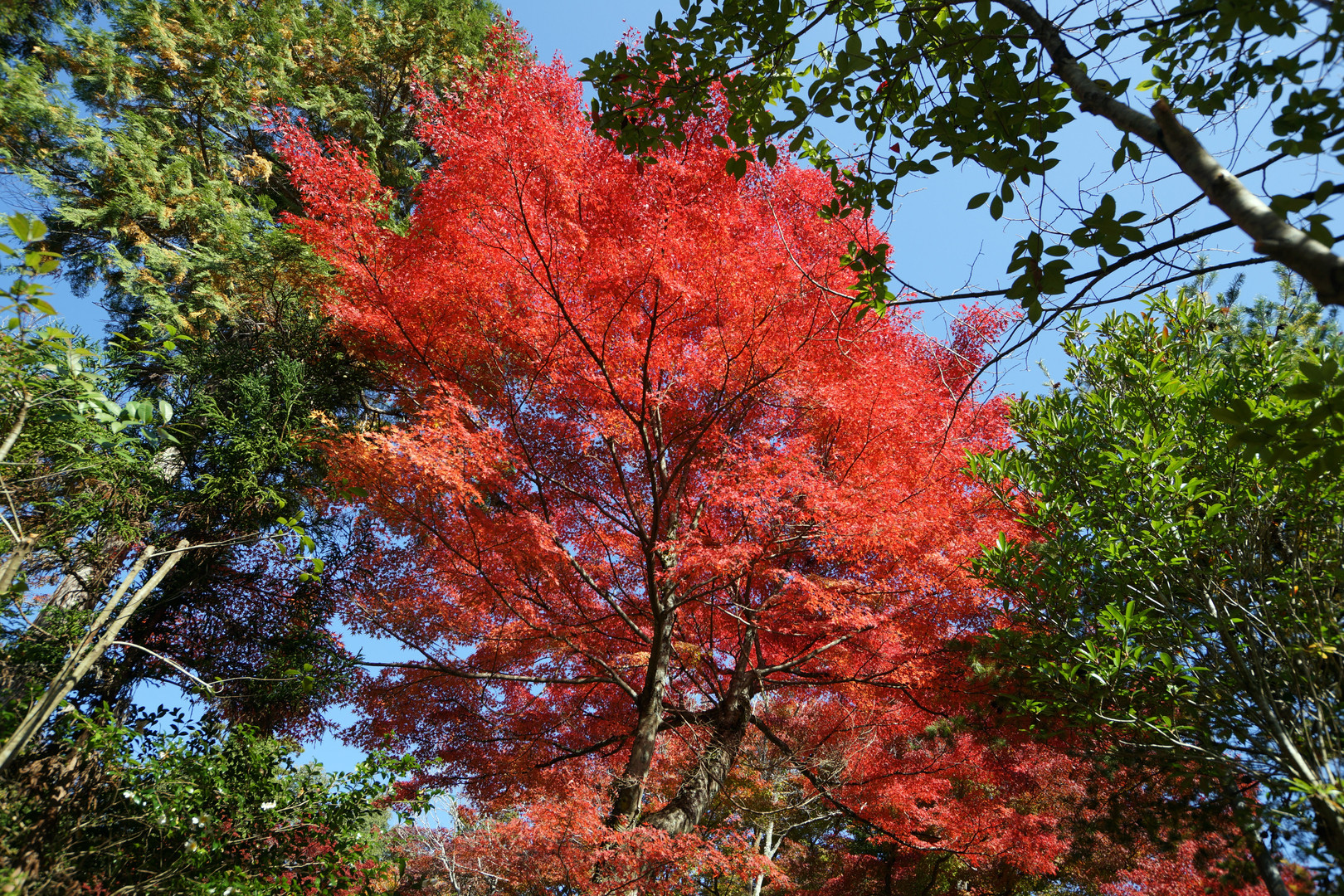 緑の中に鮮やかに紅葉してました。
