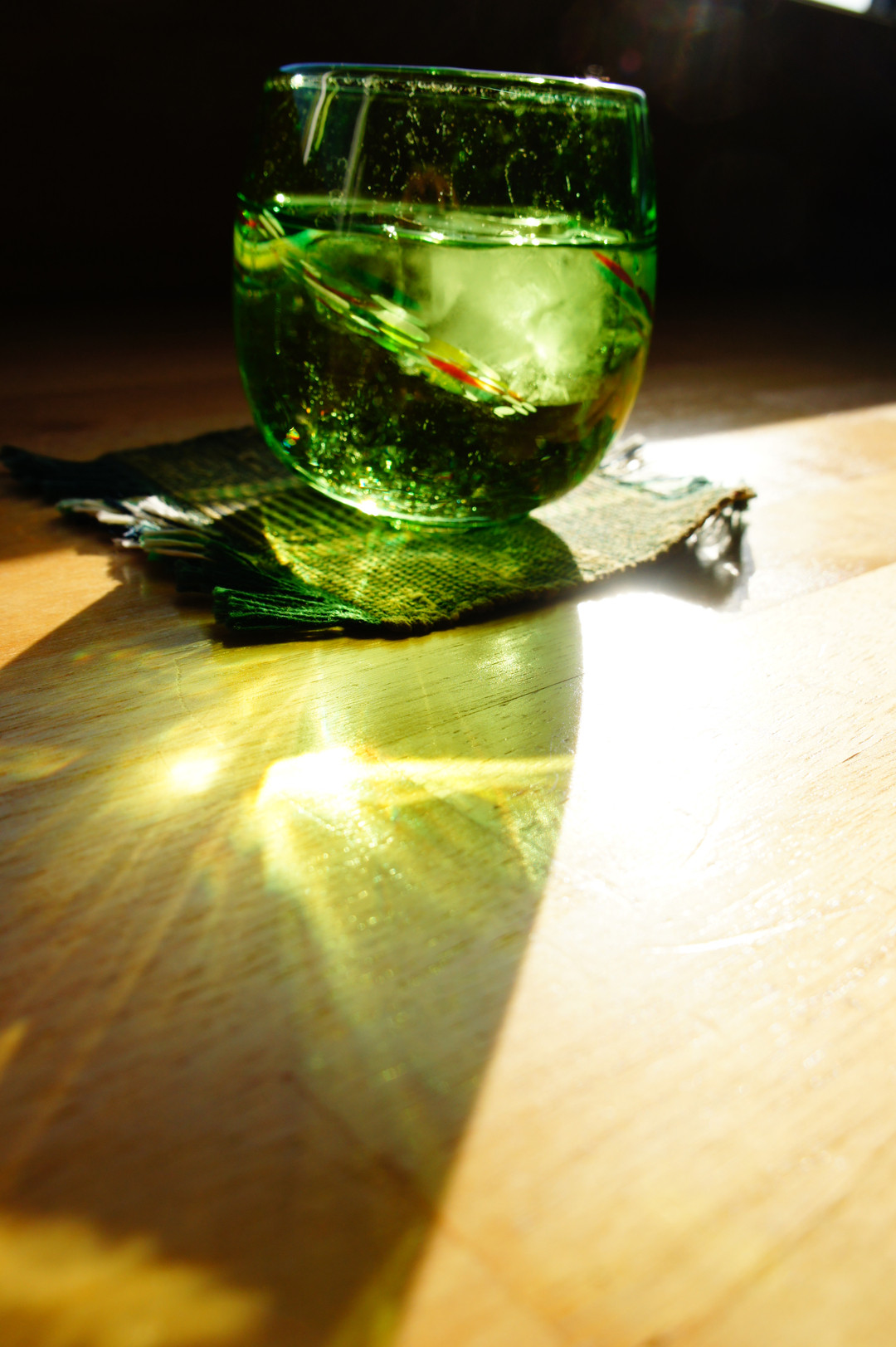 カフェで出してもらってお水ですが、 天気がよく気持ちいい感じで光が入っていたので。