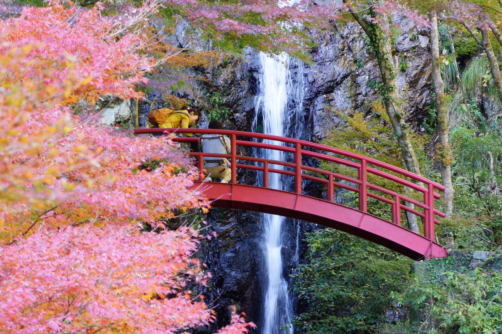 近くにある、五宝の滝で、紅葉が見ごろになっていました。