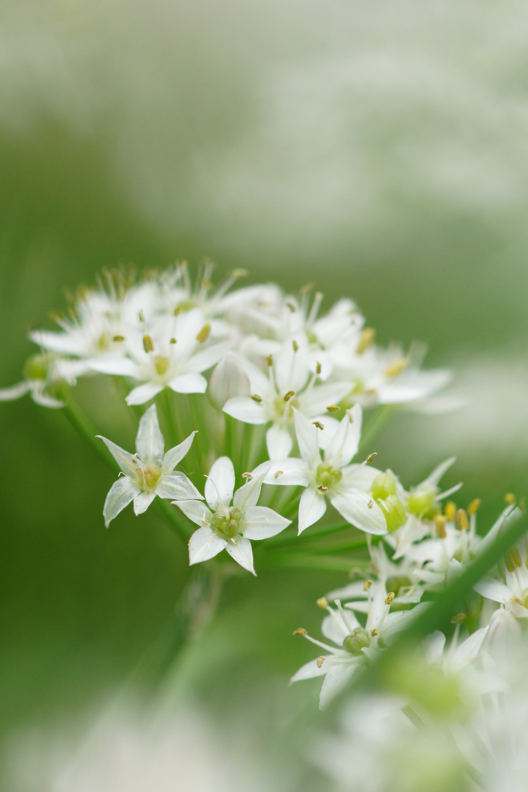 花壇に咲いていた可憐で白い・・・ニンニクの花です(たぶん)。