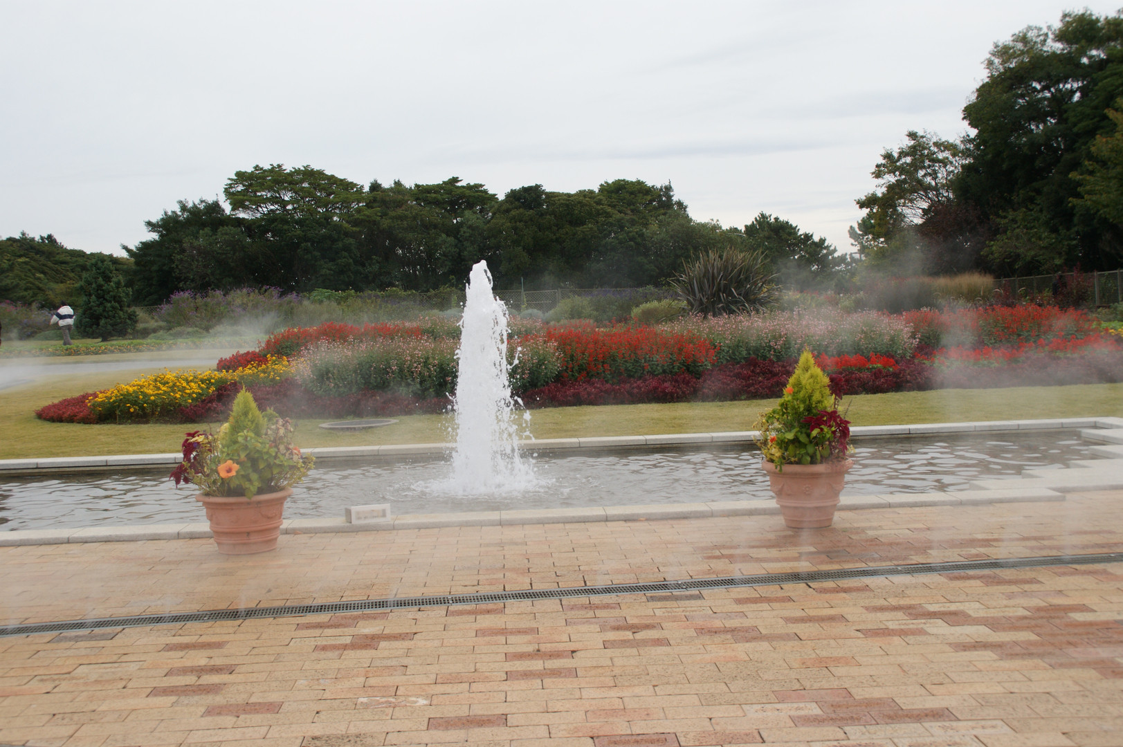 千葉花の美術館前広場噴水のところに霧が地中より出て幻想的なので写しました