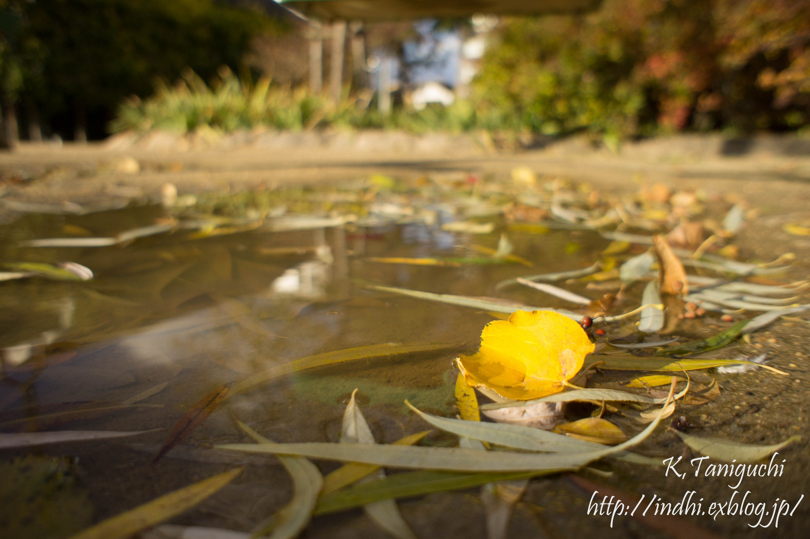 公園の水たまりで