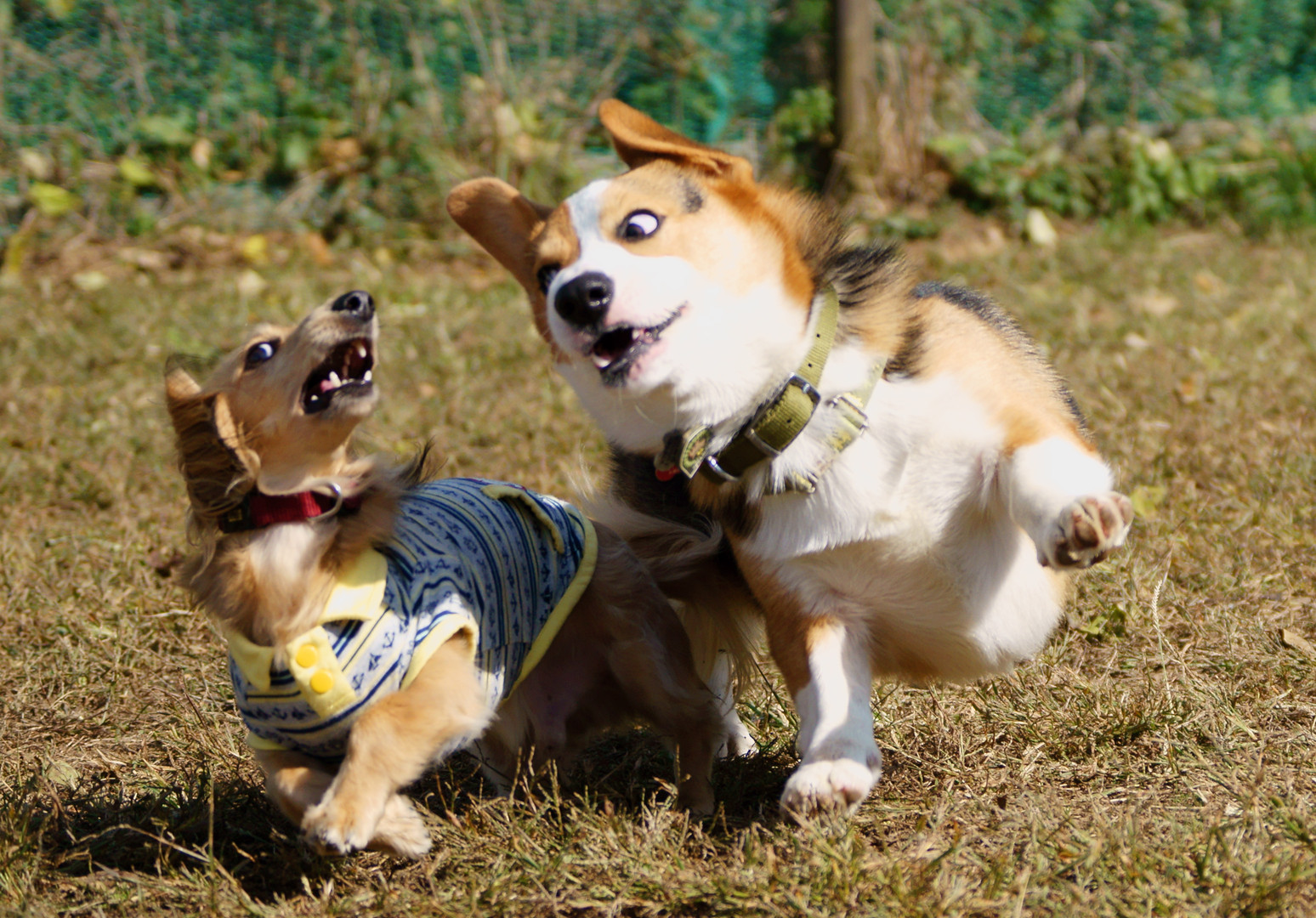 ドッグランで遊ぶ愛犬です。 仲良くダンスを踊って、、なわけないか^^