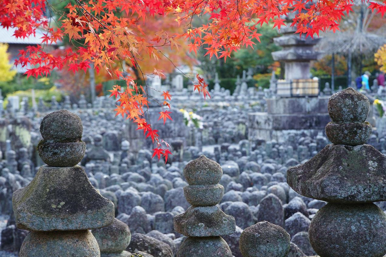 紅葉と墓石のアンバランス