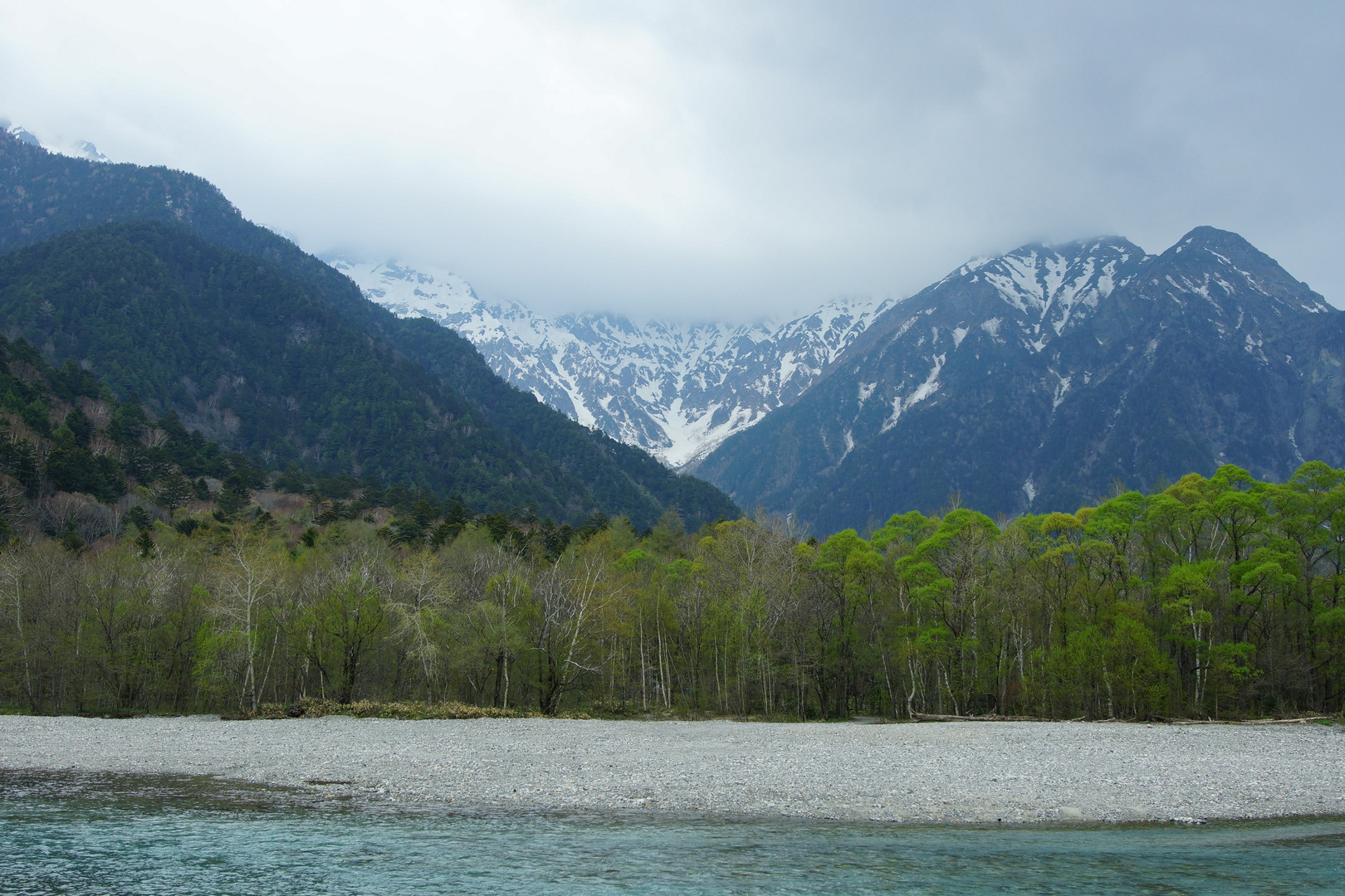 穂高岳への道をさえぎるかのような林。