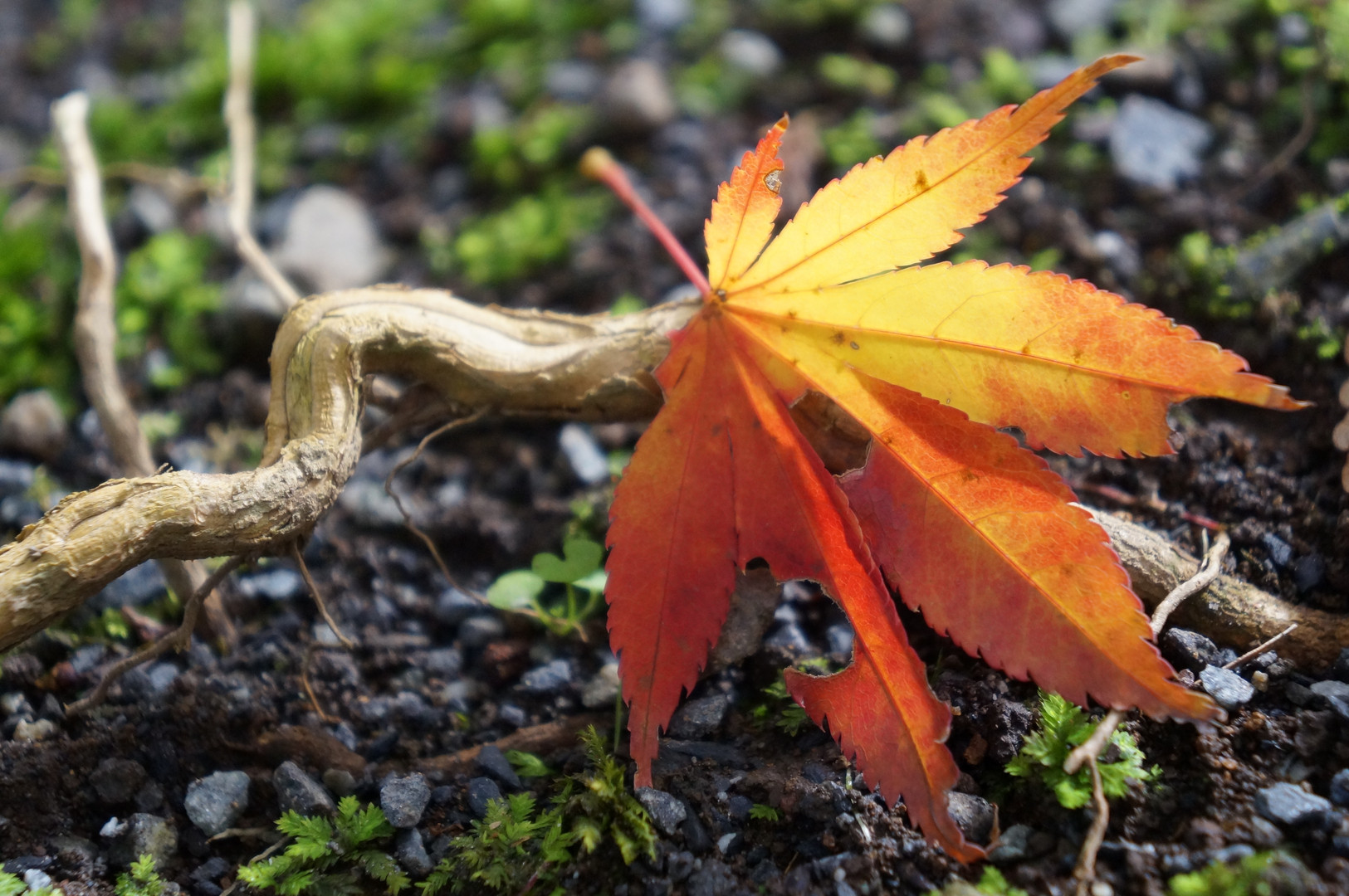 これも平林寺。根っこの上に一枚のもみじがひらひら落ちて一つになってる感じ。 目線を変えたアングルで・・。