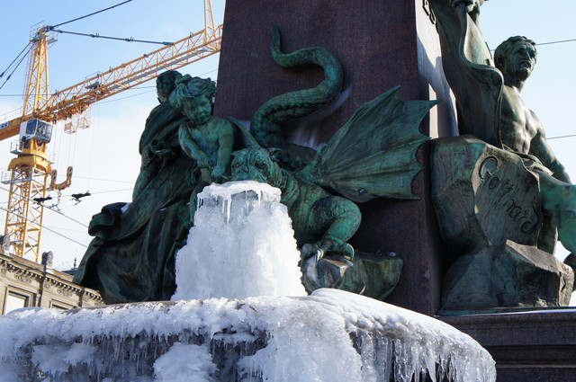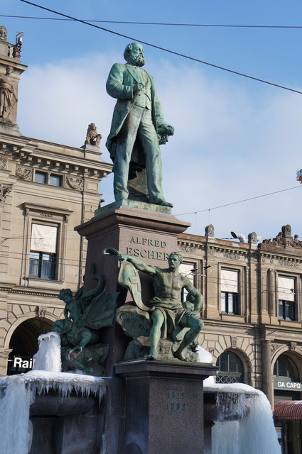 昨年2月のチューリッヒ中央駅にある噴水。