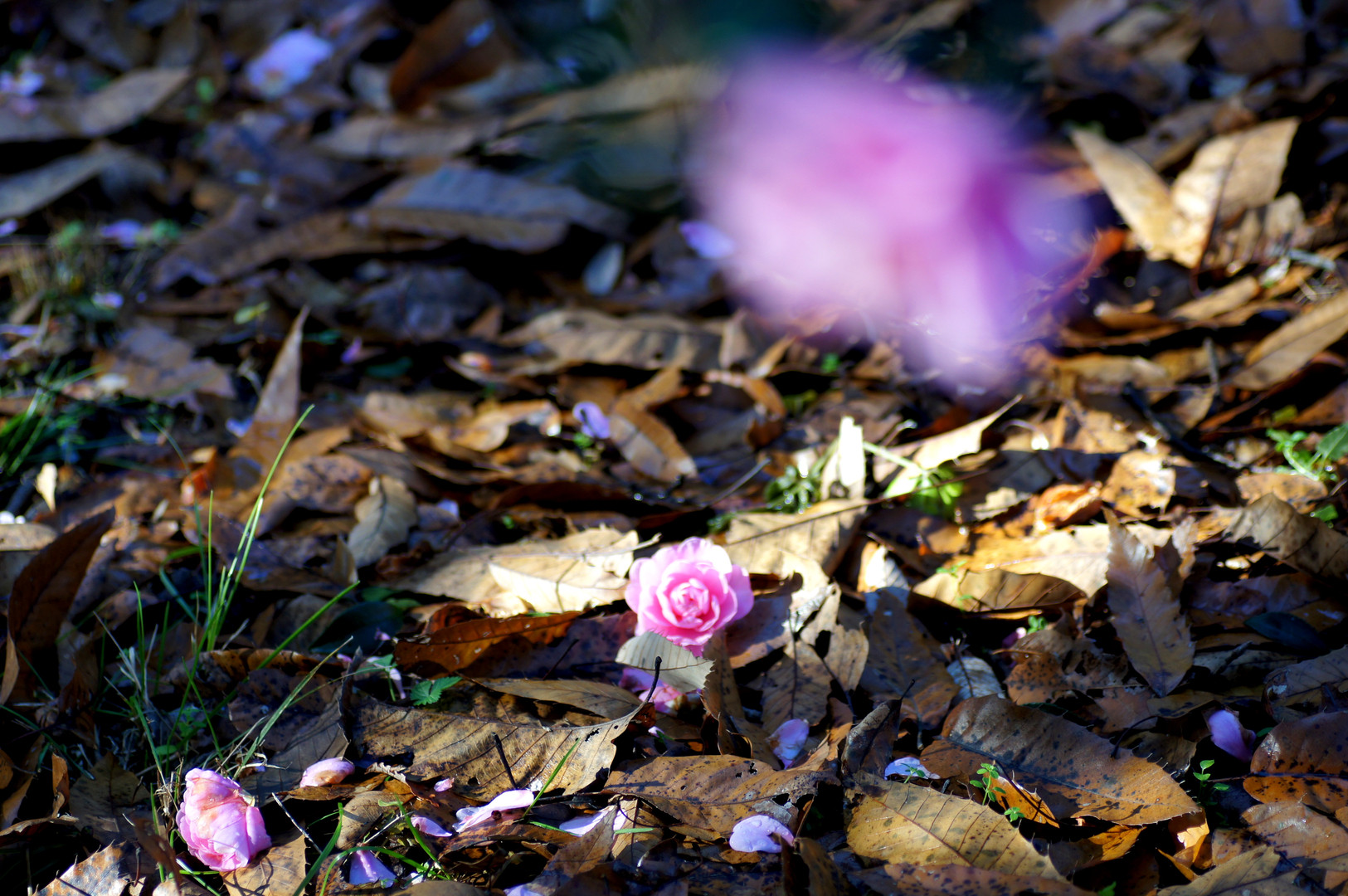 花が終わったさざんかは 茶色に変色して地に落ちるのでは・・ このさざんかはまだ変色もしてないし 形も綺麗だ。 なんとも惜しい一輪である
