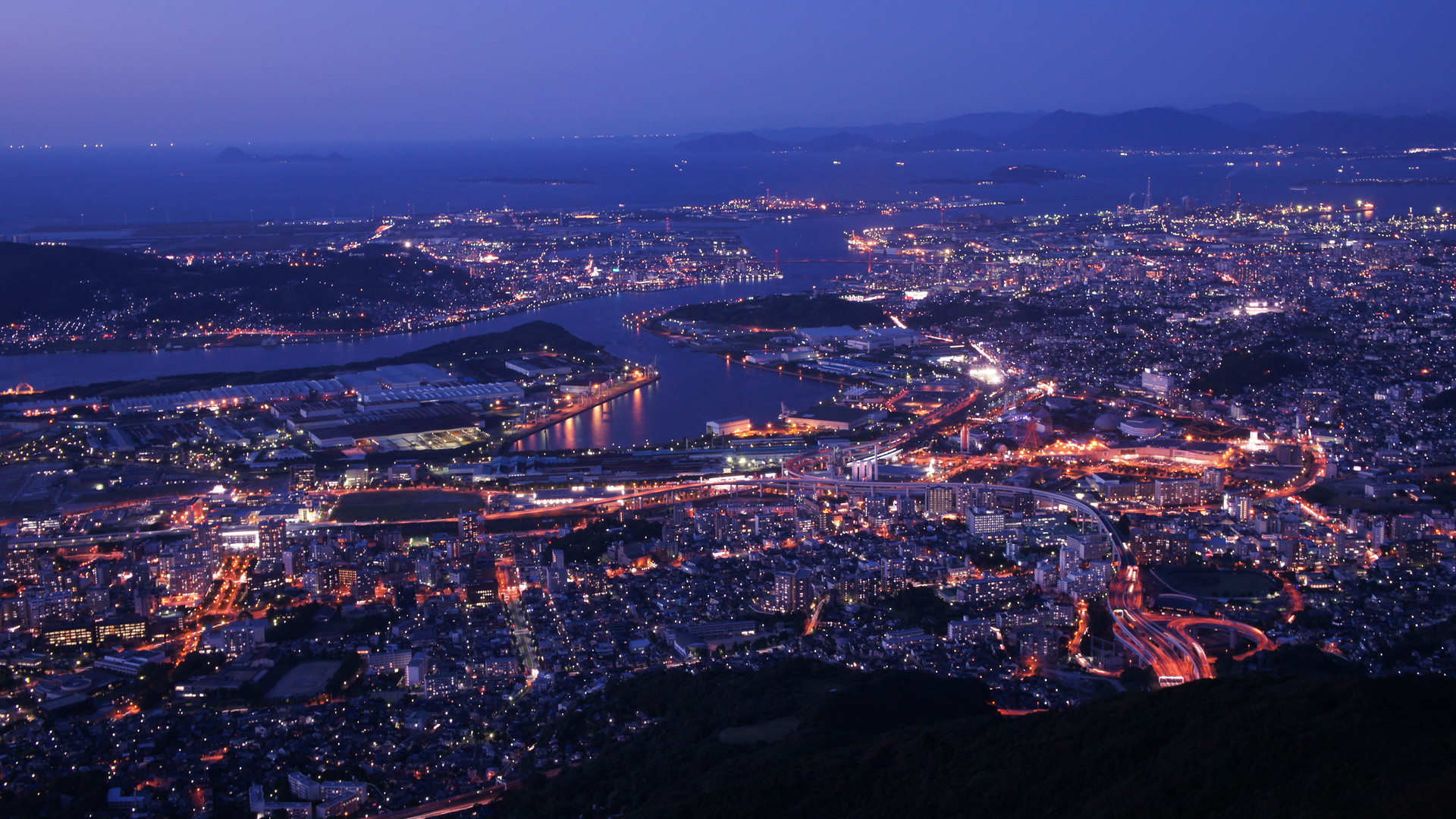 日が暮れてゆくのと、家々の明かりが灯り始めるのを、三脚にカメラをセットしてずっと待ってました。さすが新日本三大夜景に選ばれただけあって、スケールが大きくてきれいでした。