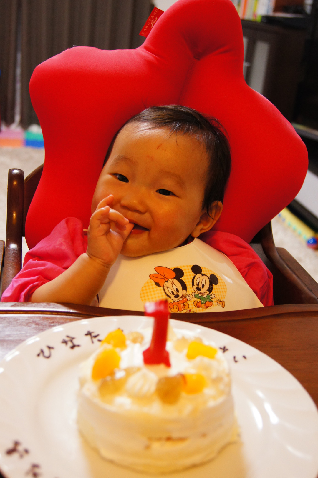 初めてのお誕生日です。 ママの手作りケーキがよい感じです!