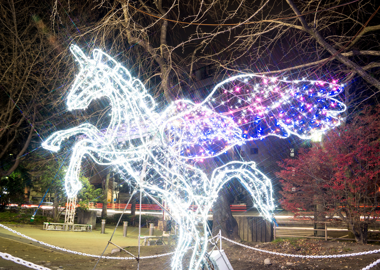 西公園でもイルミネーションで盛り上がっていました。ペガサスもキレイでした。