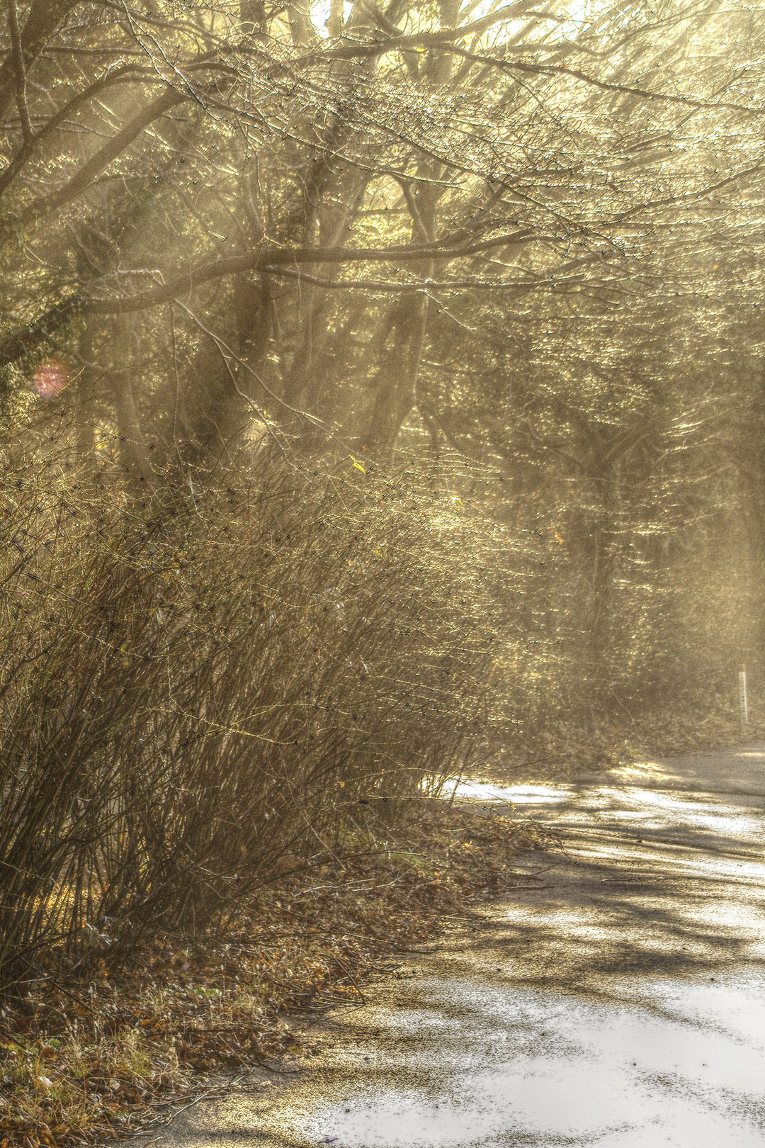 日差しの差し込むこの道でランニングする人が今朝は沢山いました。 HDR処理をしています。