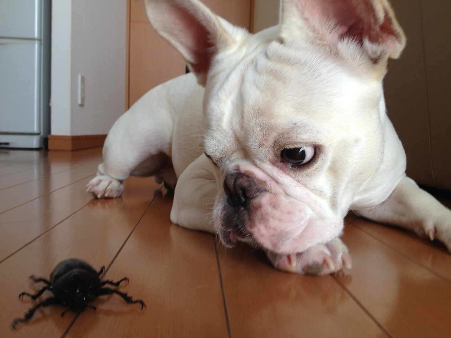 今年の夏、カブトムシが我が家に迷い込みました。 せっかくなので、「うちのわんこ」にご挨拶させました。 その時に写真です。