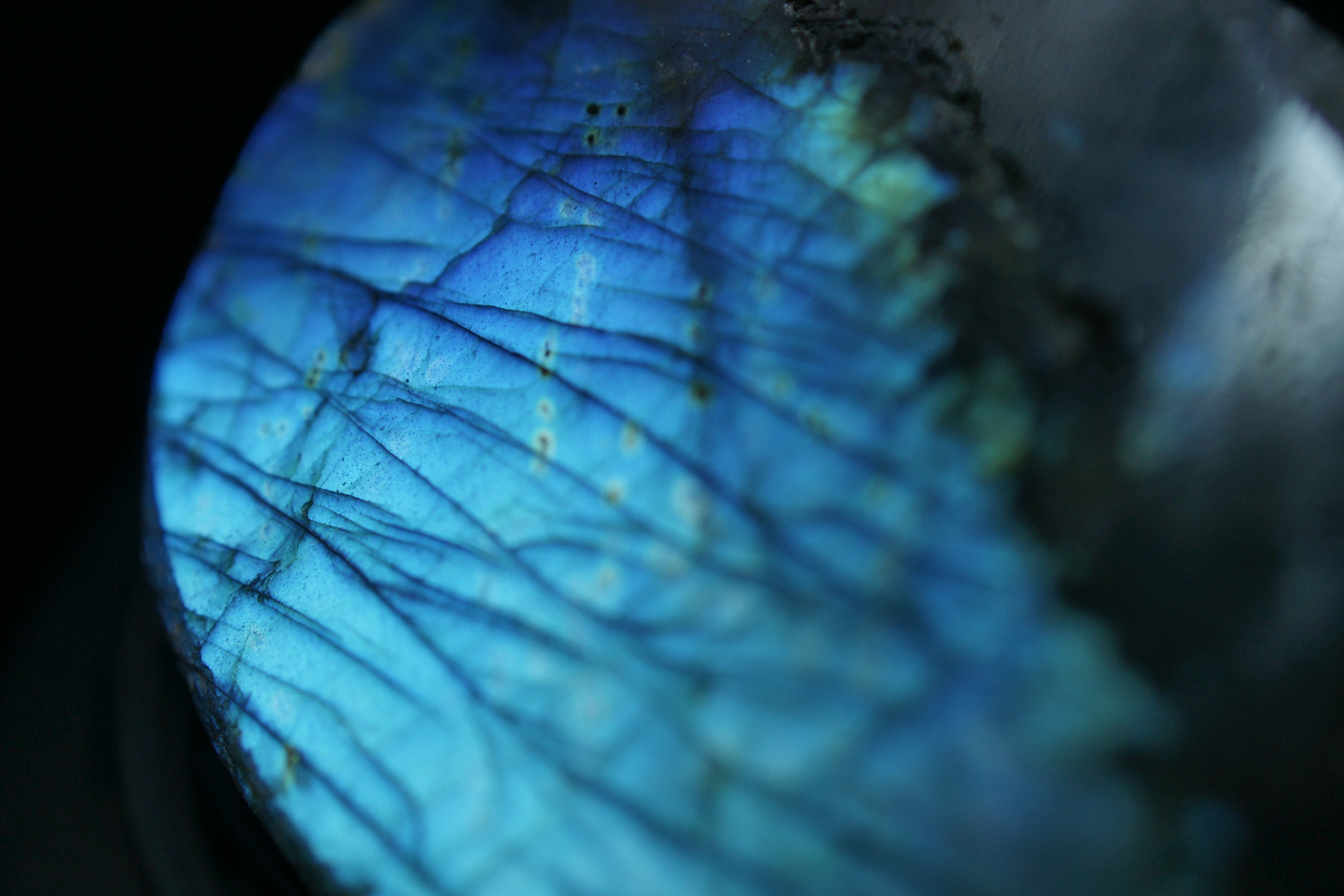 パワーストーン「ラブラドライト」の断面研磨です。 石は50mm x 30mm くらいですが、断面のほとんどが真っ青に光るなかなかのグレードです。